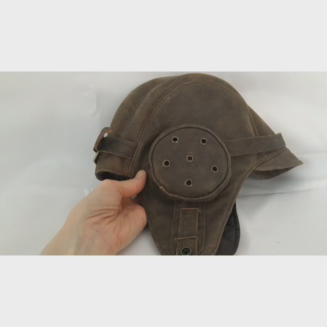 Antique Brown Leather Aviator Hat For Headphones - Henry Model